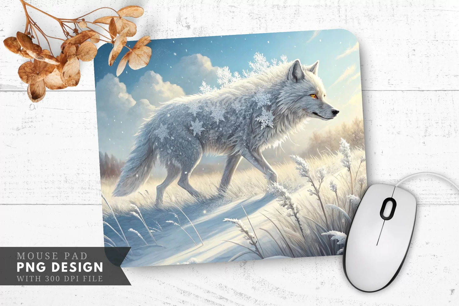Snowflake Wolf in a Winter Meadow Mouse Pad PNG Design example image 1