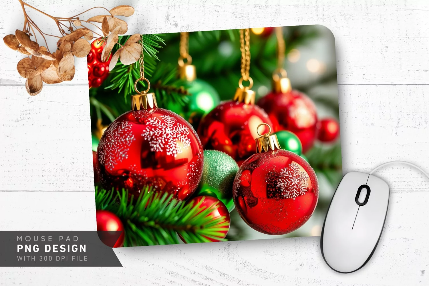 Instant Download Digital Download Christmas Decor Png File Printable Art Sublimation Design Holiday Gift Festive Mousepad Holiday Mousepad Glittering Baubles Christmas Mousepad