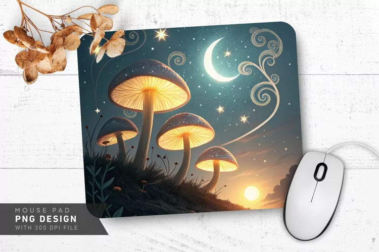 Celestial Mushroom Fantasy Mouse Pad PNG Design