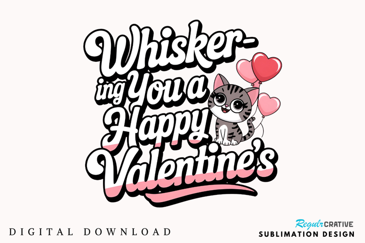 Whisker Ing You A Happy Valentine’s Sublimation PNG Design example image 1