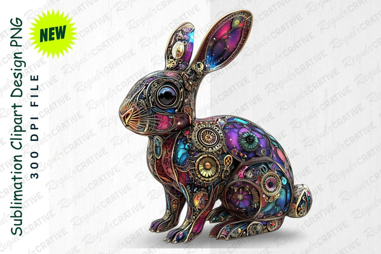 Intricate Steampunk Rabbit Illustration With Gears Clipart example image 1