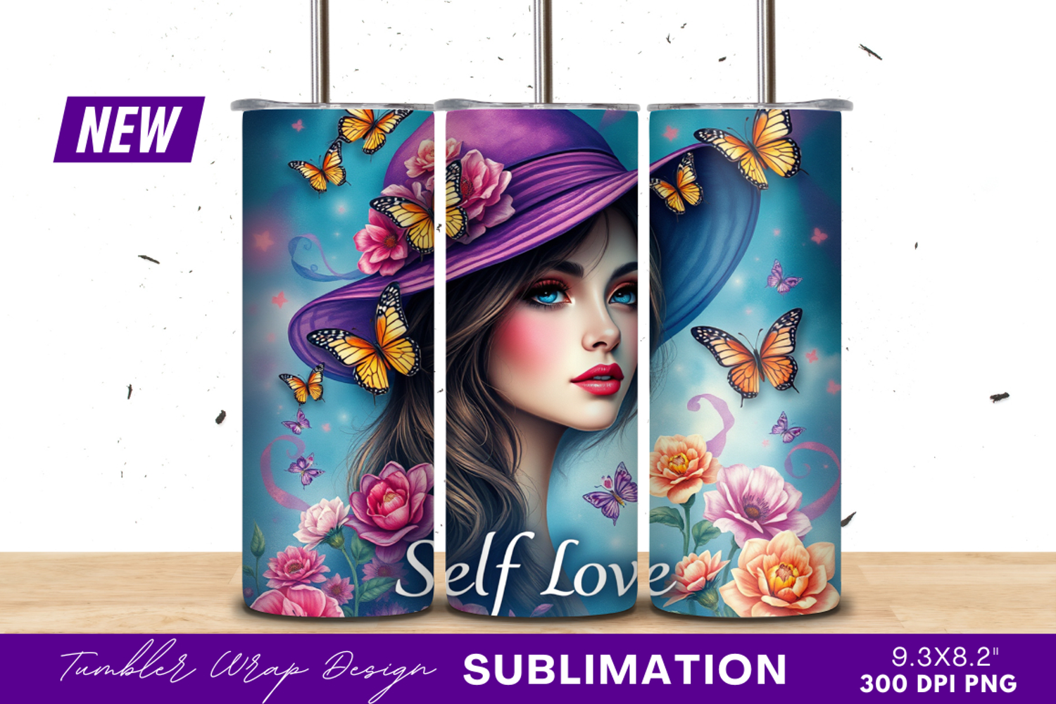 Similar Design Products to Portrait Of Woman With Butterflies And Flowers Tumbler