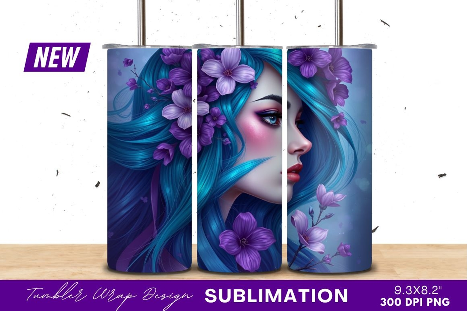 Similar Design Products to Elegant Woman With Blue Hair And Flowers Tumbler Png