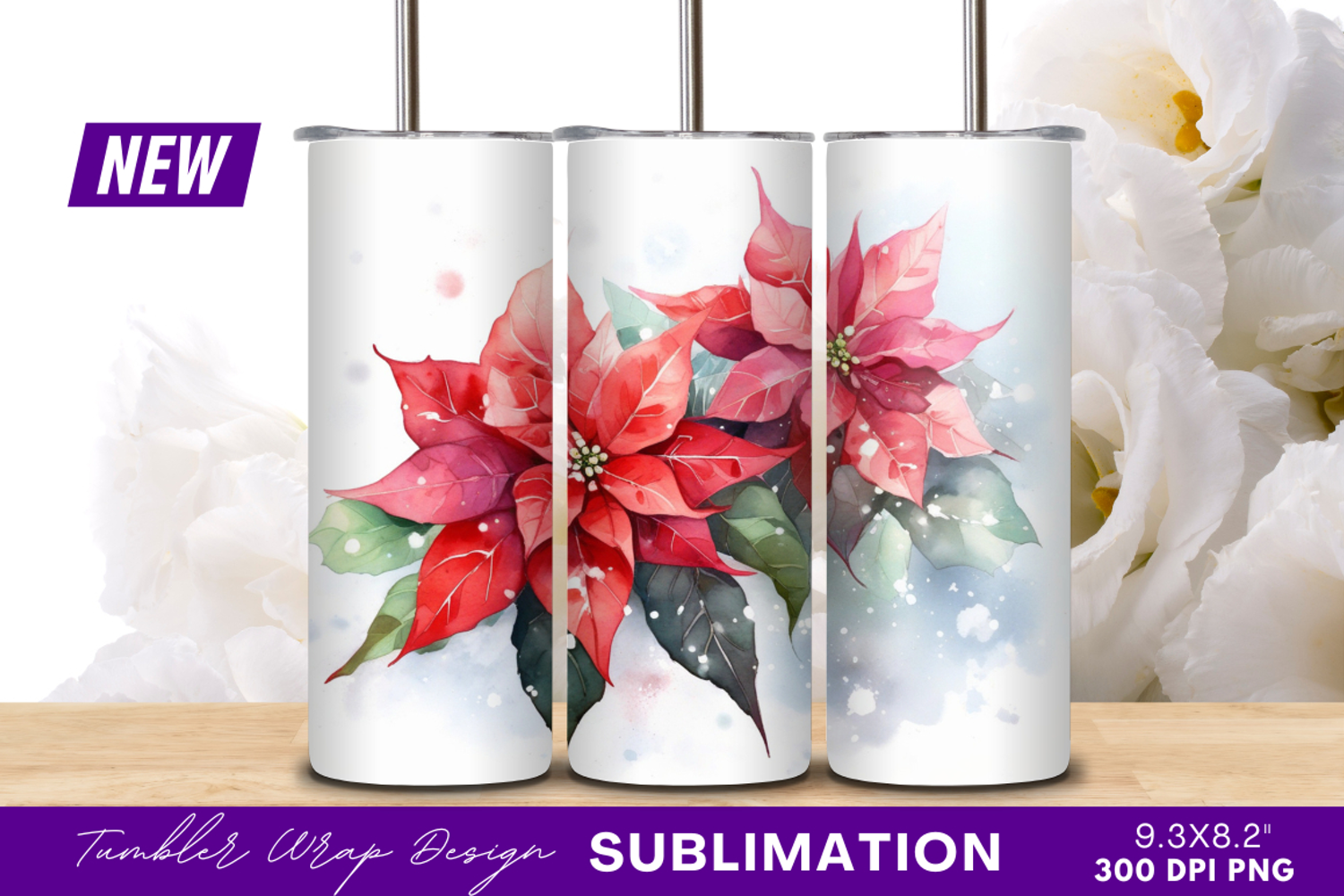 Watercolor Poinsettia Arrangement For Christmas Tumbler Png example image 1