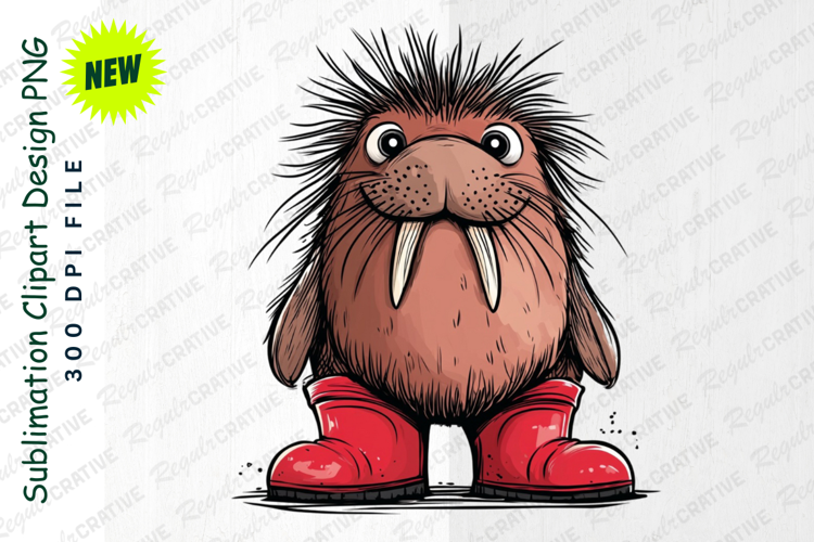 Cartoon Walrus Character Wearing Red Boots Adorable Clipart example image 1