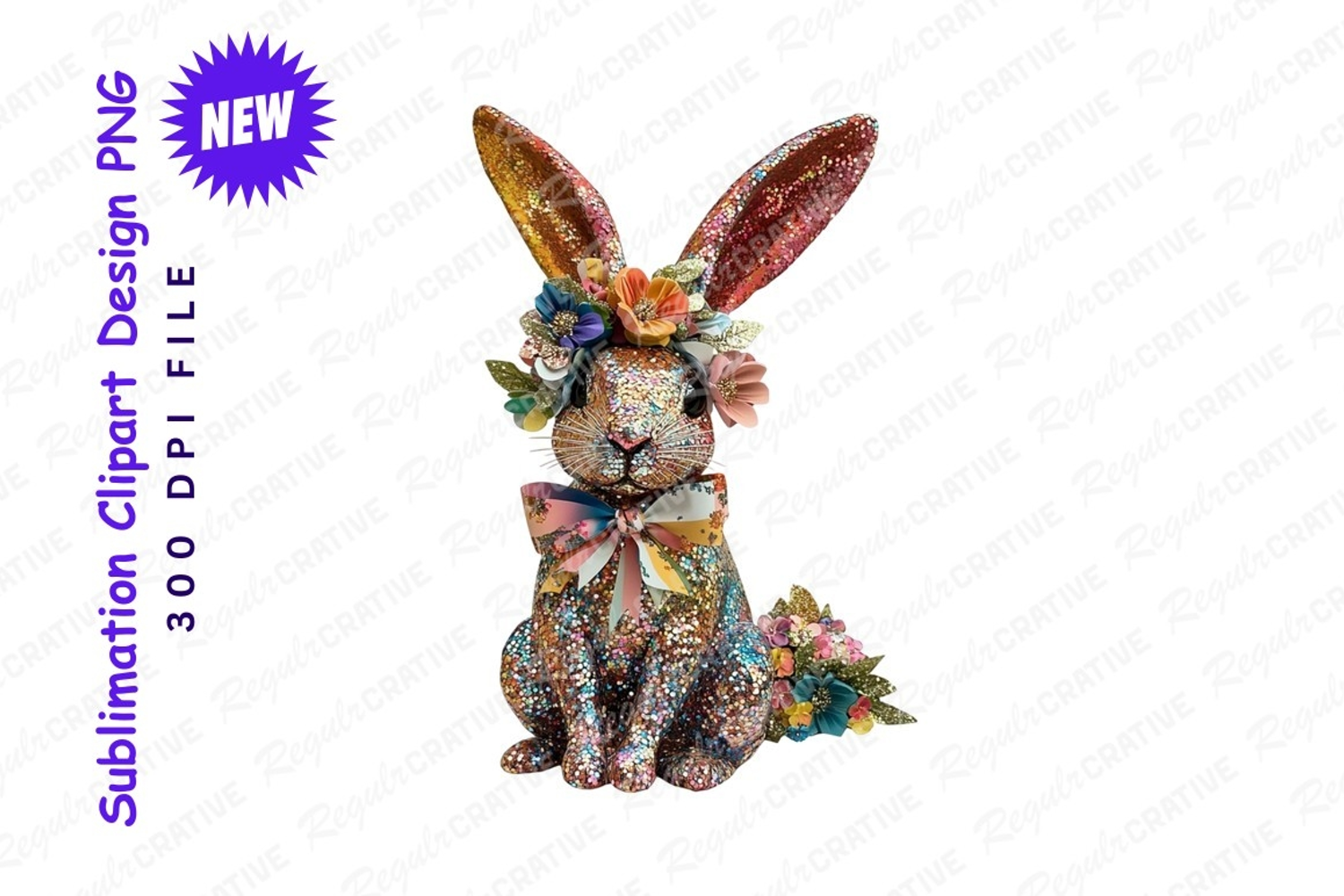 Glitzy Easter Bunny With Floral Crown And Bow Tie Clipart example image 1