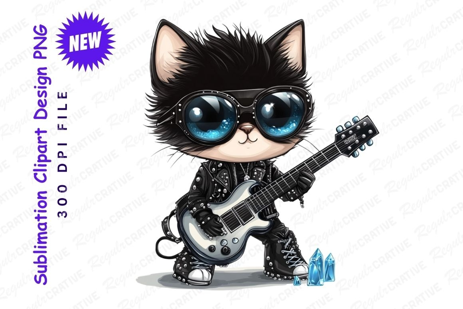 Cool Cat Rocker Plays Electric Guitar Cartoon Clipart Png example image 1