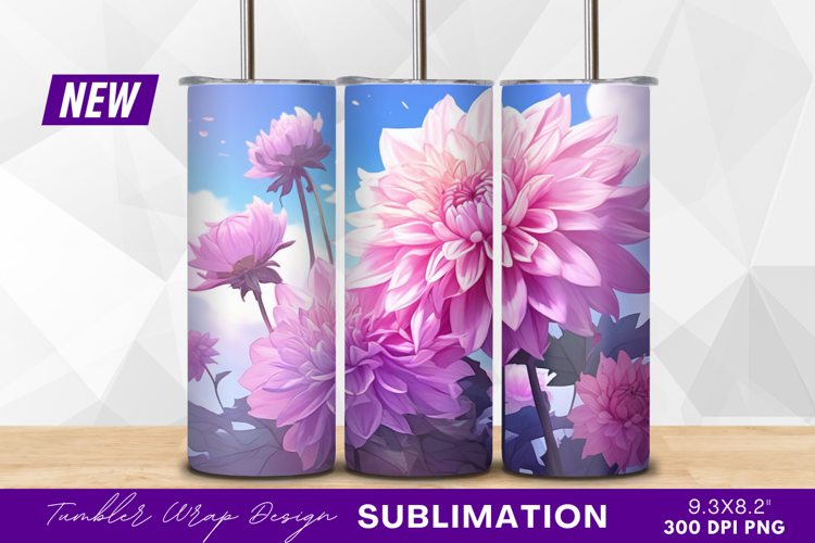 Similar Design Products to Pink dahlia flowers against blue sky tumbler png