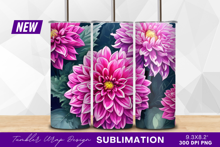 Blooming pink dahlias botanical illustration tumbler png example image 1