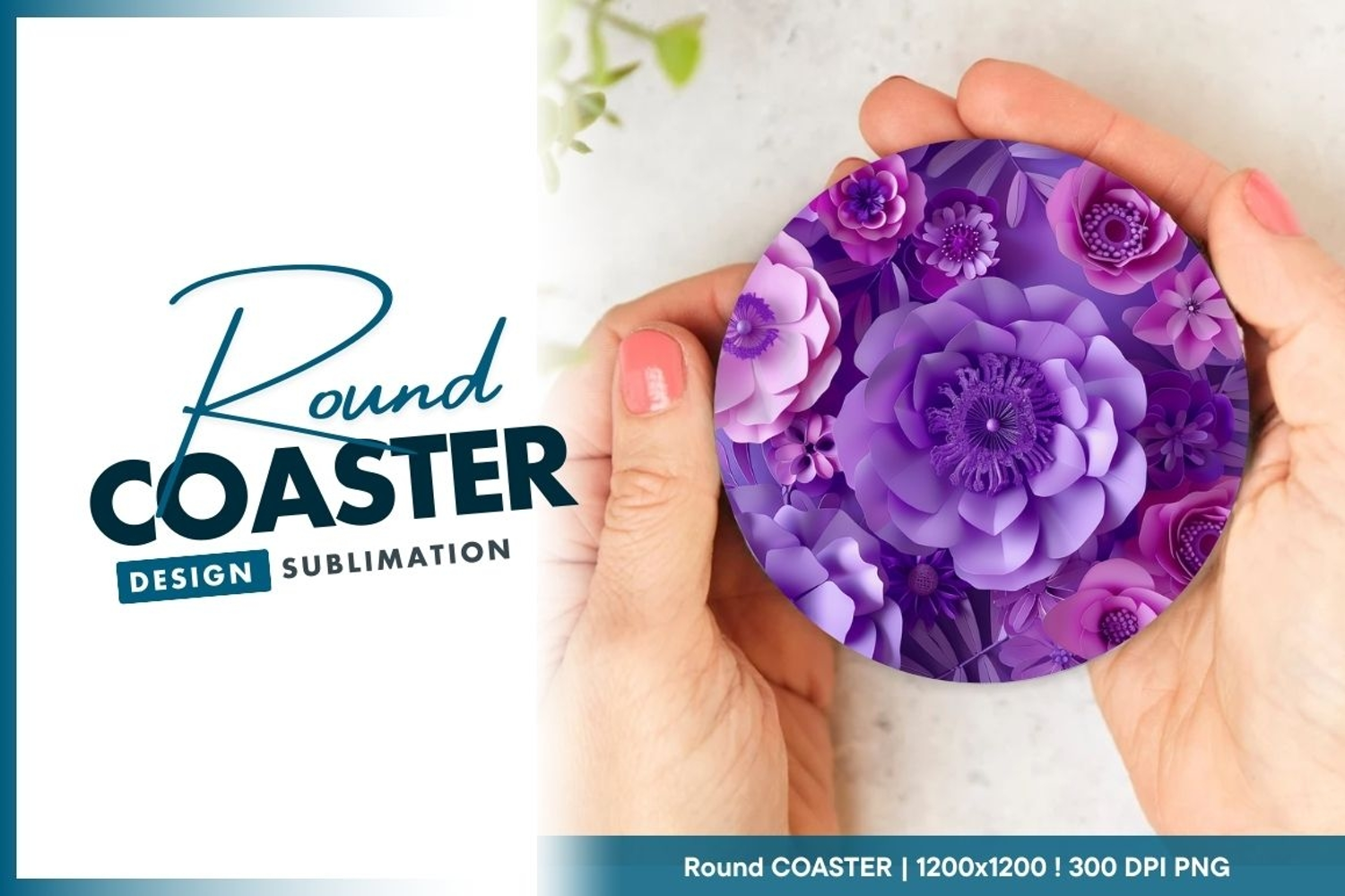 Similar Design Products to Floral paper craft artwork purple color round coaster