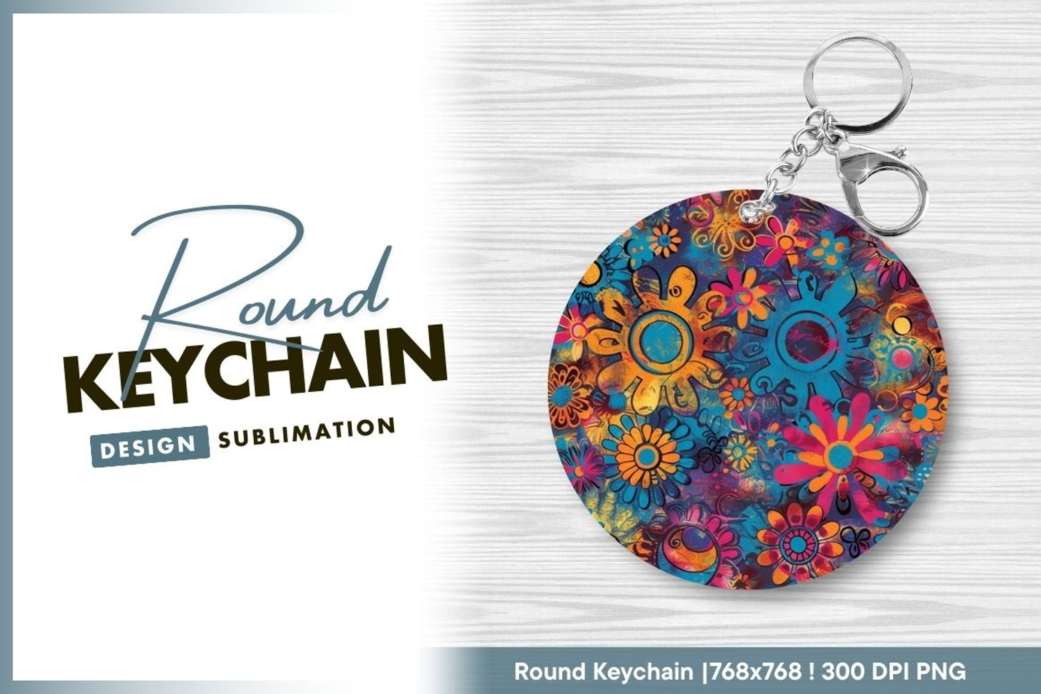 🔑 Round Keychain Sublimation Design | 768x768 px | 300 DPI PNG 🔑