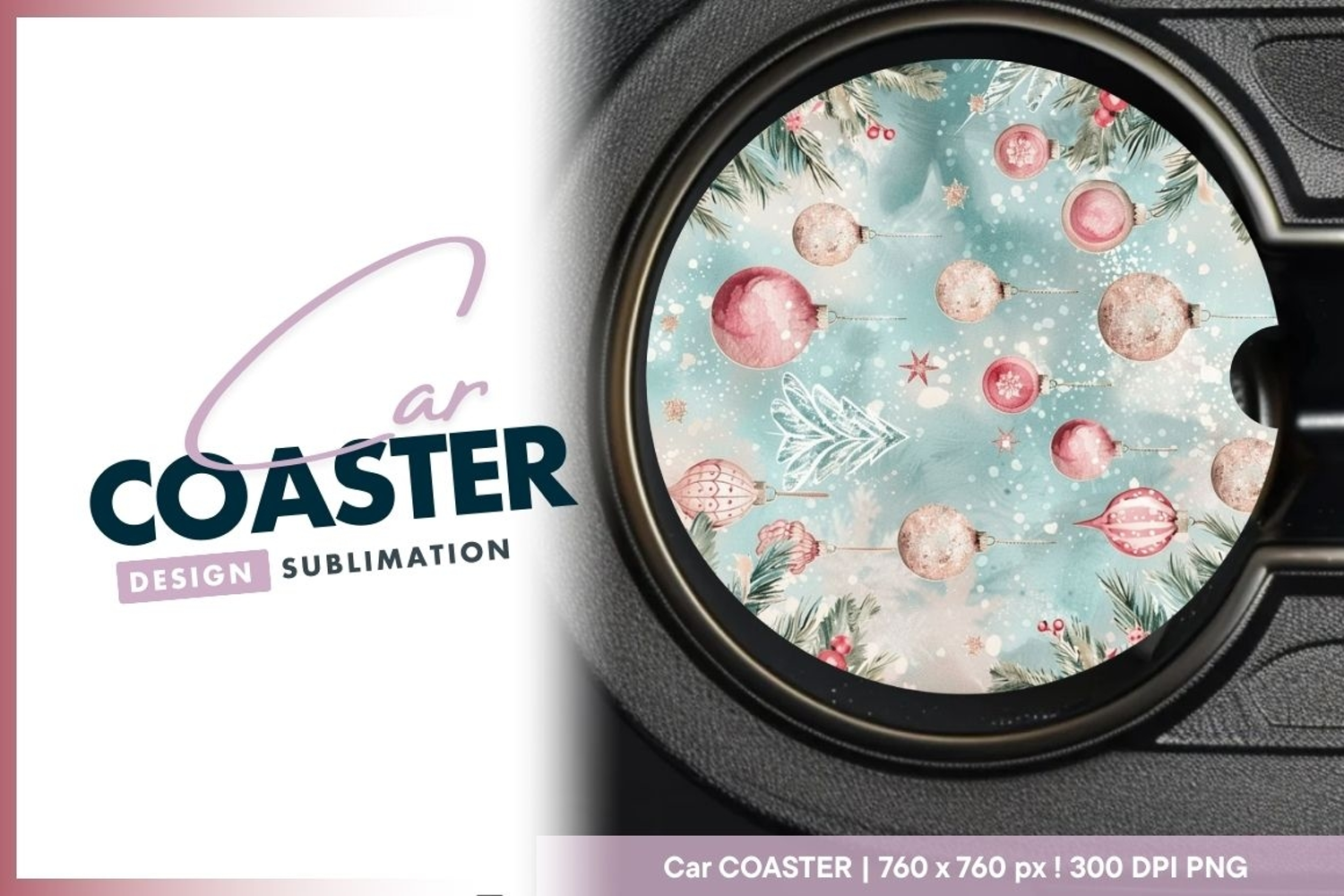 Watercolor christmas ornaments and pine round car coaster example image 1