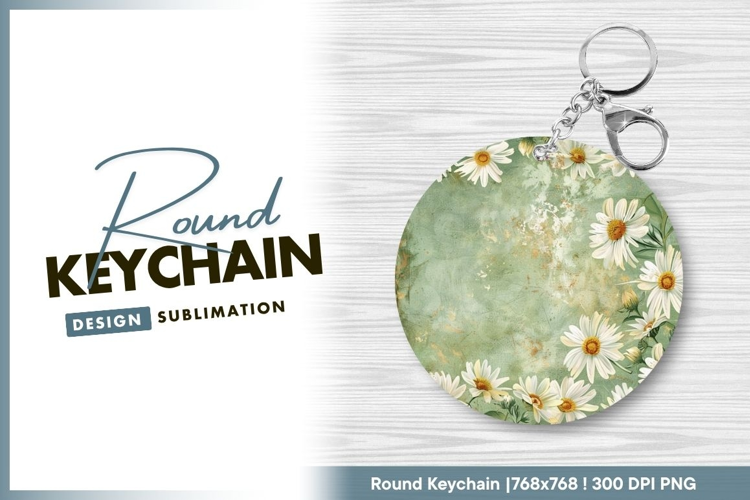 Grunge Round Design Green Floral Flower Daisy Sublimation Keychain Round Keychain Png