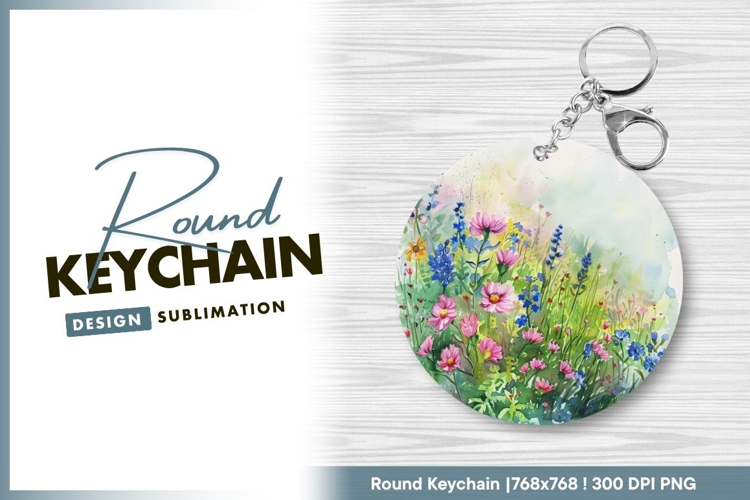 Watercolor Round Design Floral Flowers Printable Blank Sublimation Keychain Round Keychain Png