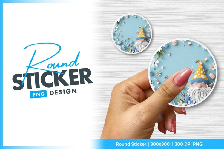 Illustration Spring Vector Sticker Cute Design Easter Flowers Gnome Round Sticker Png