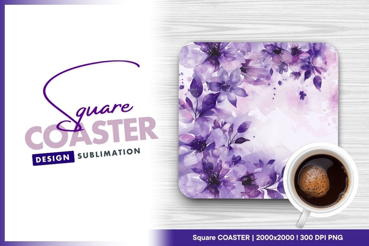 Watercolor Design Floral Flowers Leaves Purple Blossom Sublimation Coaster Square Coaster Png