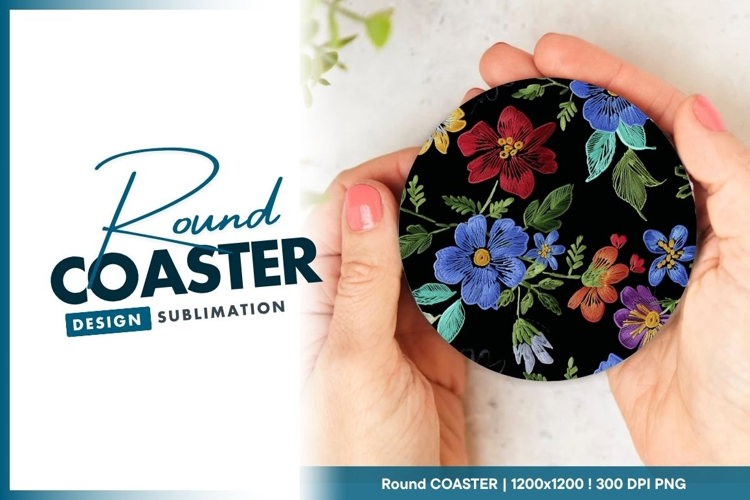 Similar Design Products to Embroidered Floral Pattern on Black Background Round Coaster