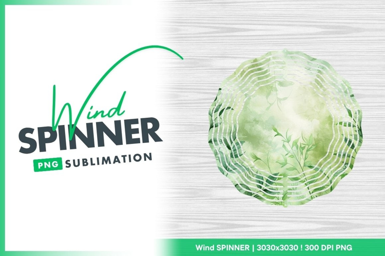 Watercolor Round Nature Green Floral Leaves Png White Sublimation Wind Spinner