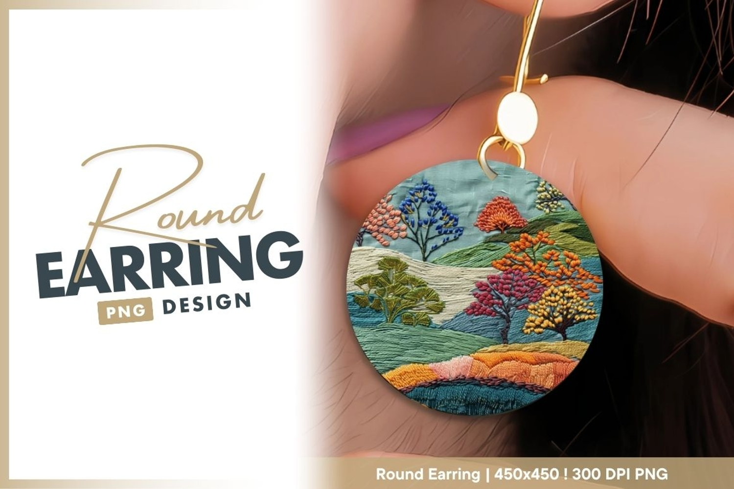 Similar Design Products to Embroidered Landscape with Colorful round earring png
