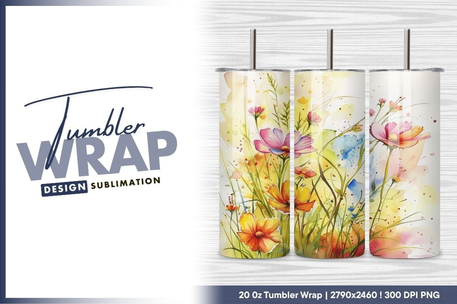 Watercolor Cosmos Flowers in Vibrant Colors tumbler png example image 1