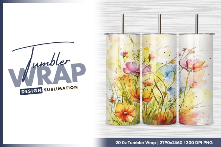 Similar Design Products to Watercolor Cosmos Flowers in Vibrant Colors tumbler png