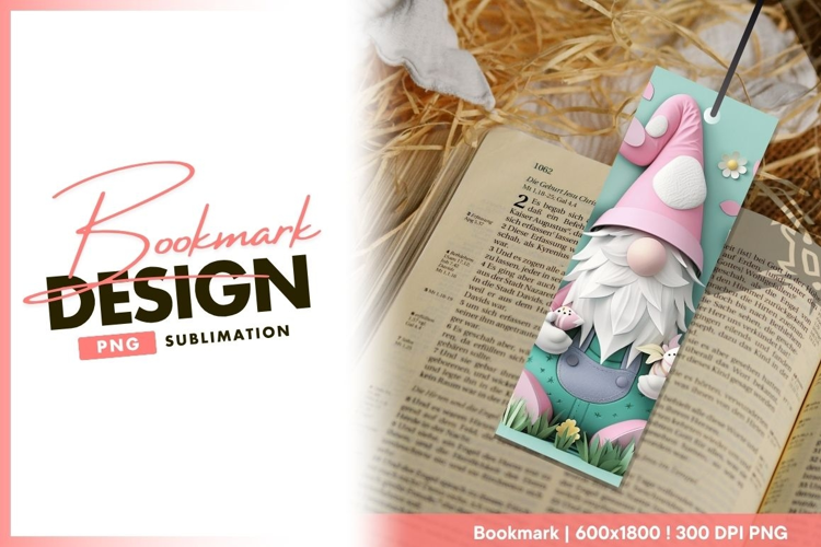 Whimsical Cute Design Easter Printable Png Sublimation Bookmark Gnome Dark Gray