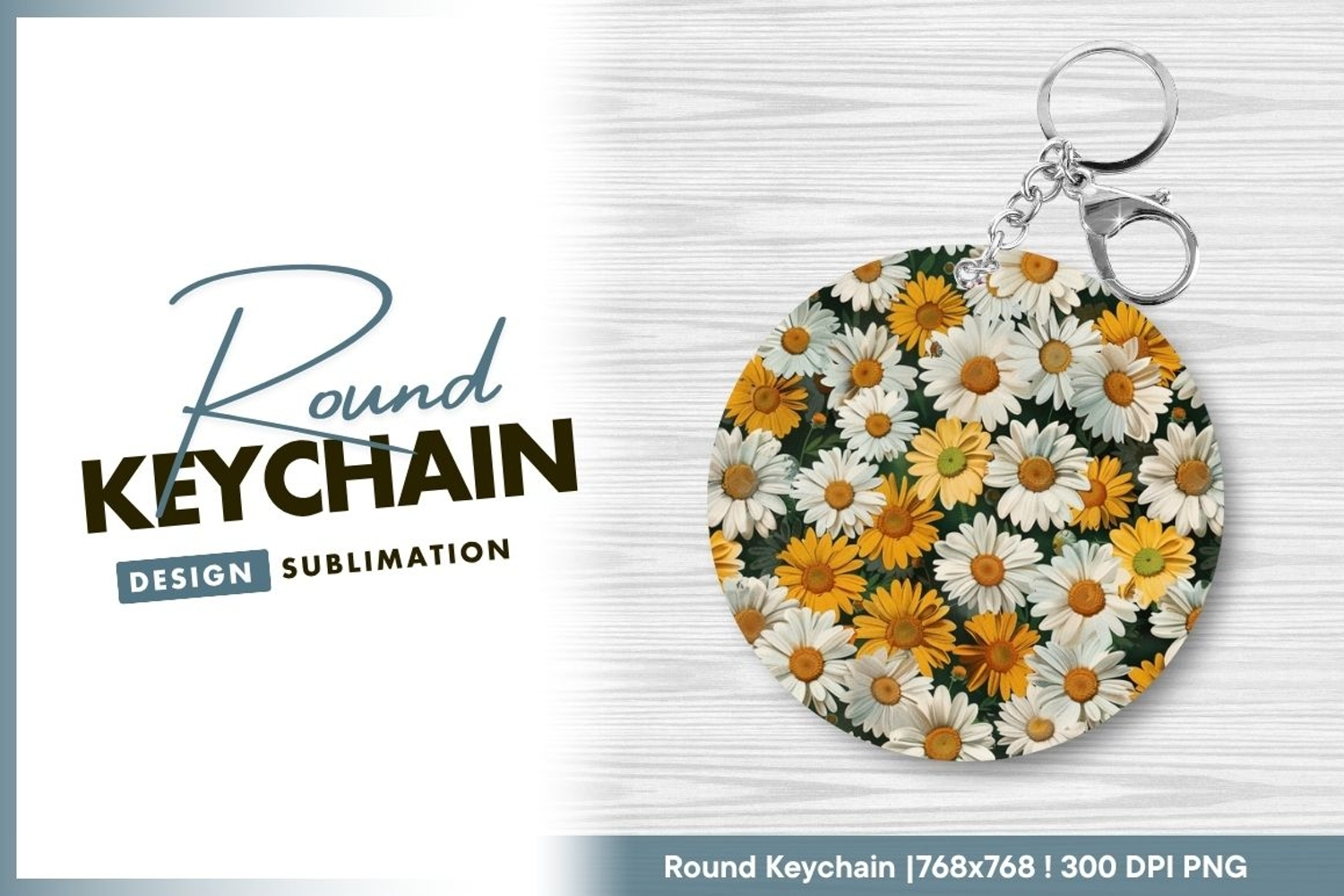 Daisy Flower Arrangement in a Circle with Round Keychain example image 1