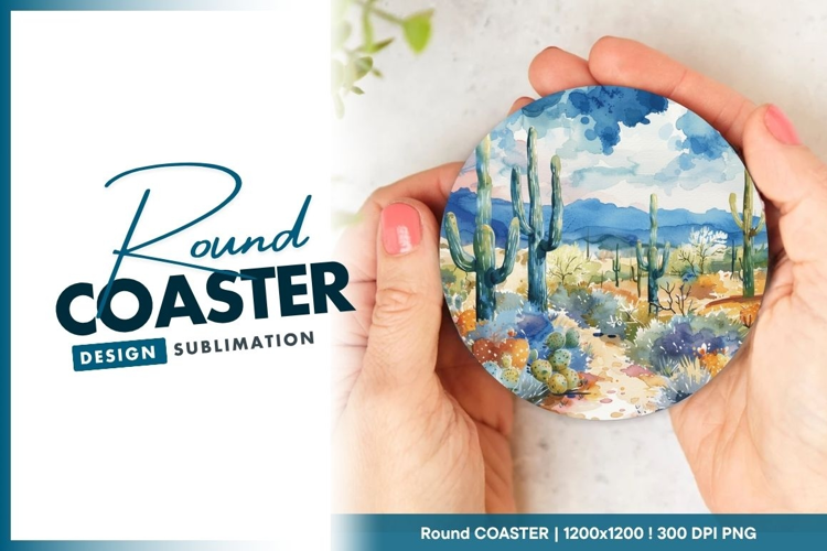 Similar Design Products to Watercolor Desert Landscape with Cacti Round Coaster Png