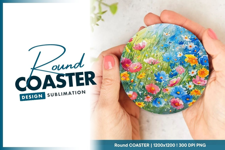 Similar Design Products to Watercolor Floral Field Illustration in a Round Coaster Png