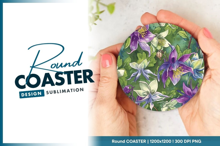 Watercolor Columbine Flowers in Round Coaster Png example image 1