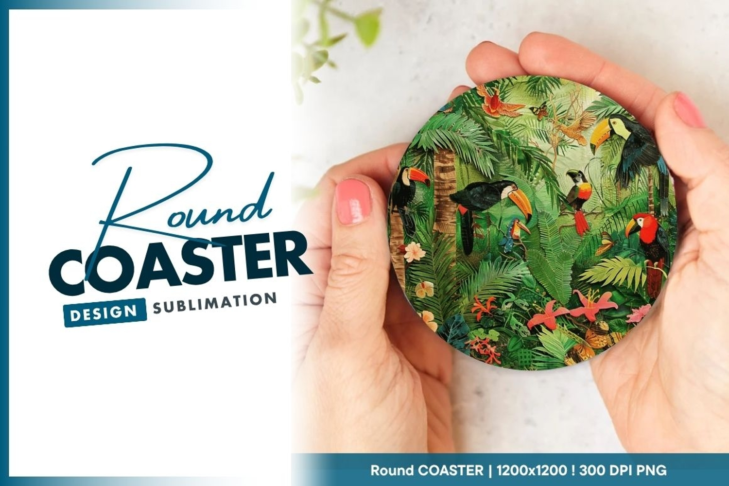 Similar Design Products to Tropical Jungle Scene with Toucans Round Coaster Design
