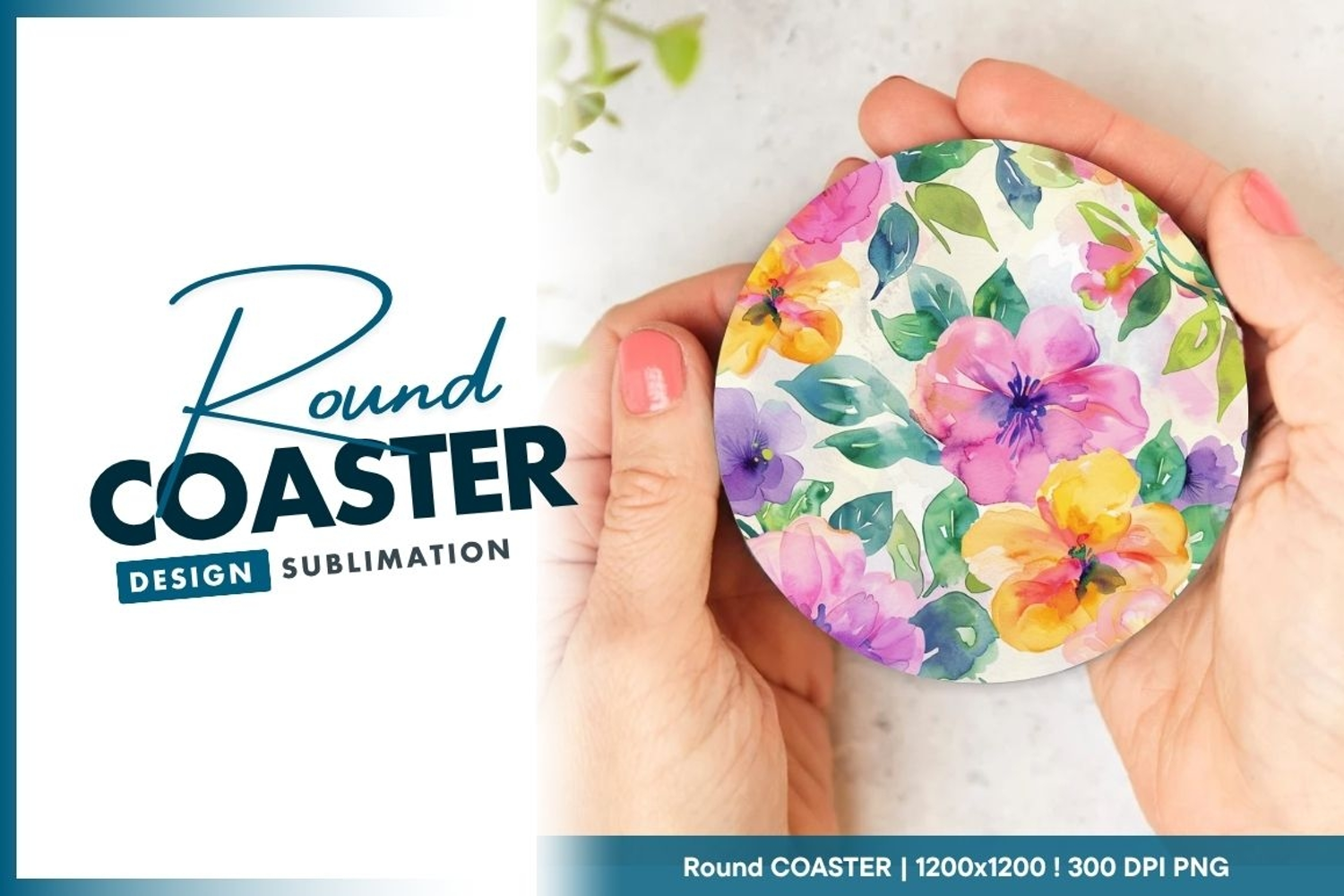 Hands Holding Floral Round Coaster Design Sublimation example image 1