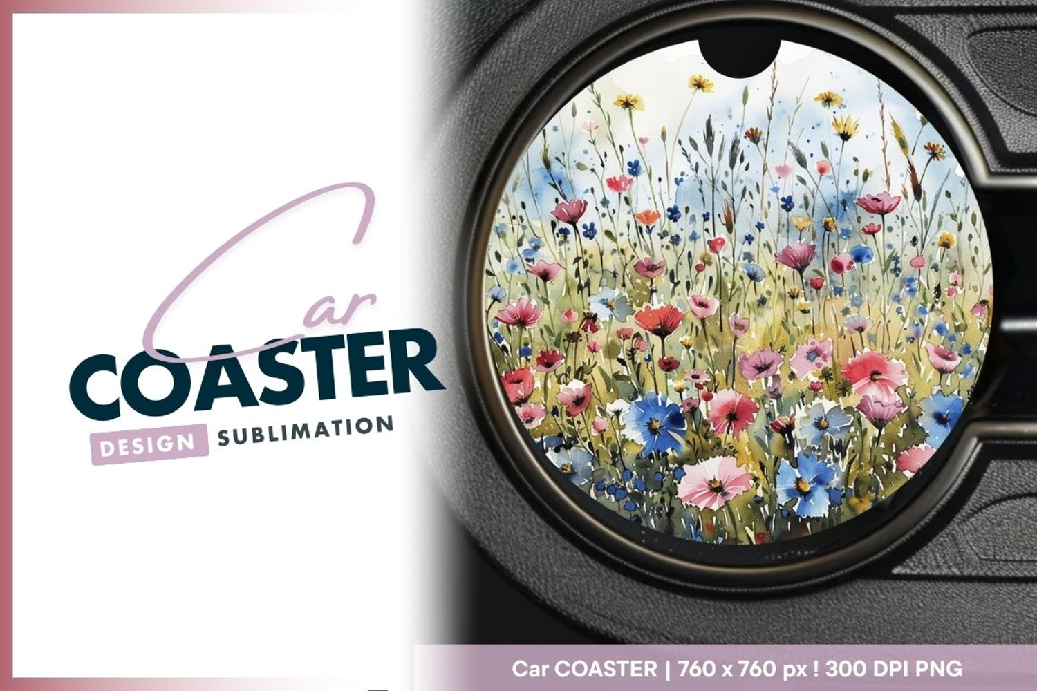 Watercolor floral field illustration in a Round Car Coaster example image 1