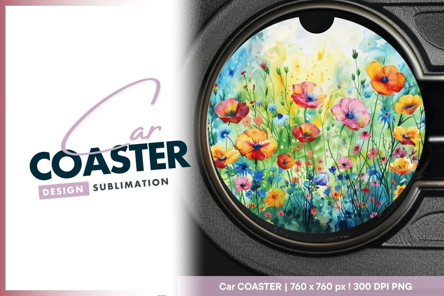 Watercolor floral design in a Round Car Coaster Png example image 1