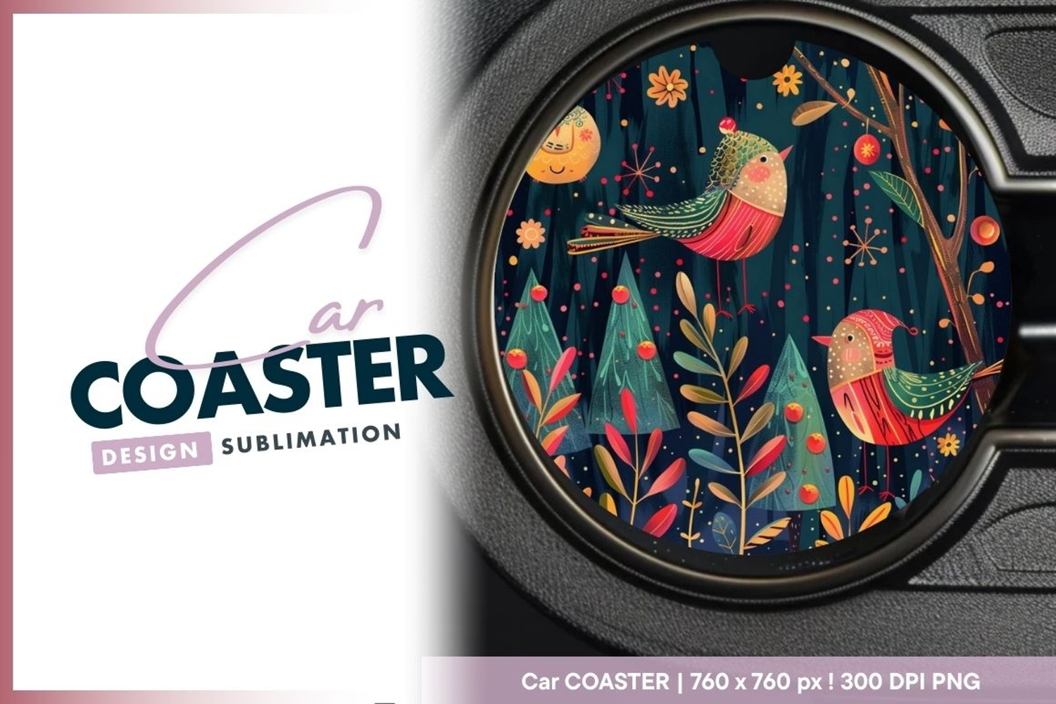 Whimsical Illustration of Birds and Round Car Coaster Png example image 1