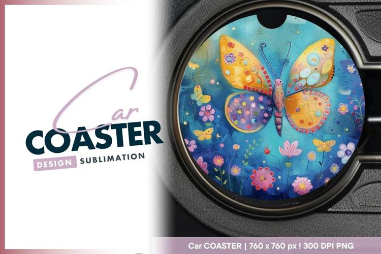 Colorful Butterfly Illustration with Round Car Coaster Png example image 1