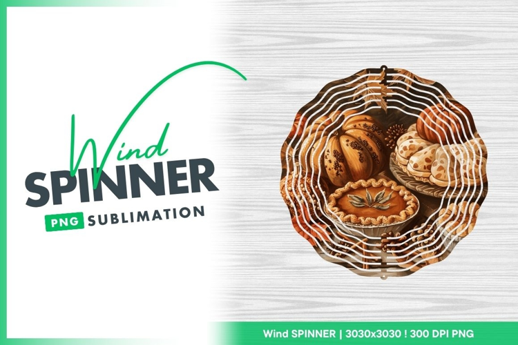 Autumn Harvest Still Life Pumpkins Pies Leaves Wind Spinner example image 1