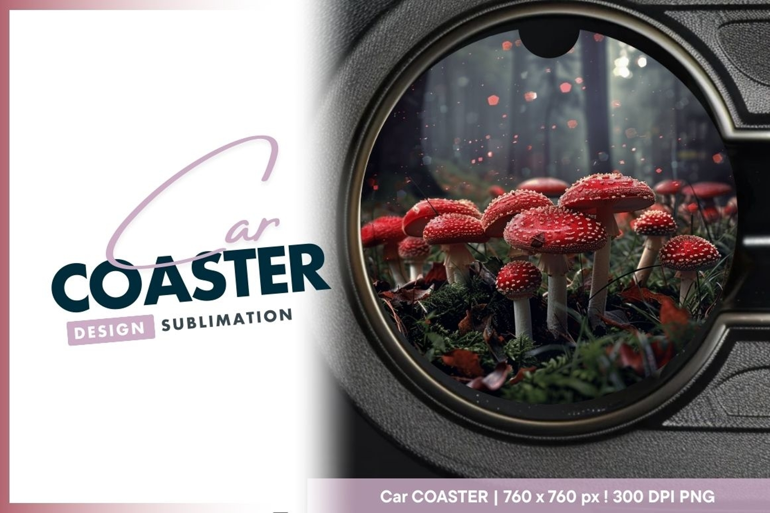 Red and White Spotted Mushrooms in a Round Car Coaster Png example image 1
