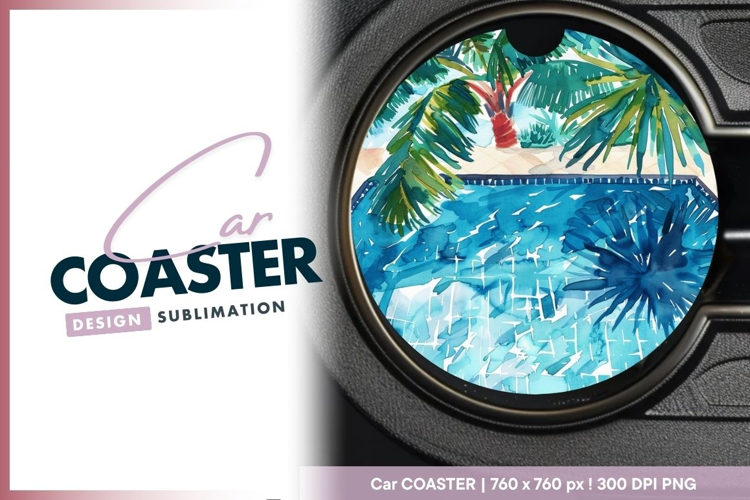 Watercolor Pool Scene with Palm Trees and Round Car Coaster example image 1