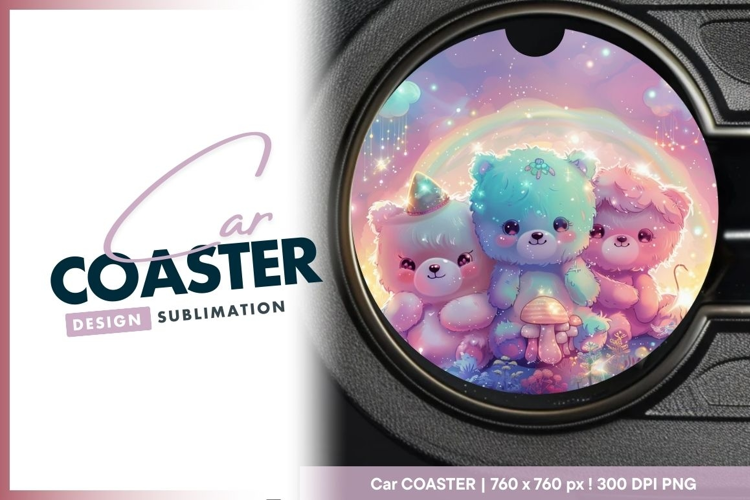 Similar Design Products to Three Pastel Teddy Bears with Rainbow Round Car Coaster Png