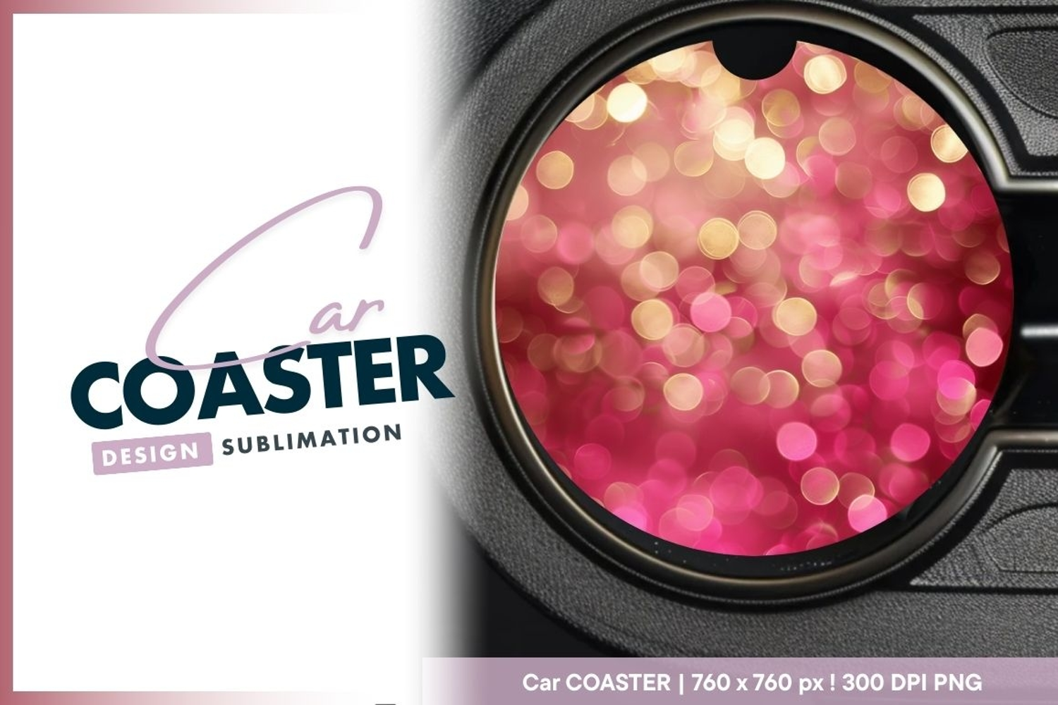 Pink and Gold Bokeh Circle Abstract Round Car Coaster Design example image 1
