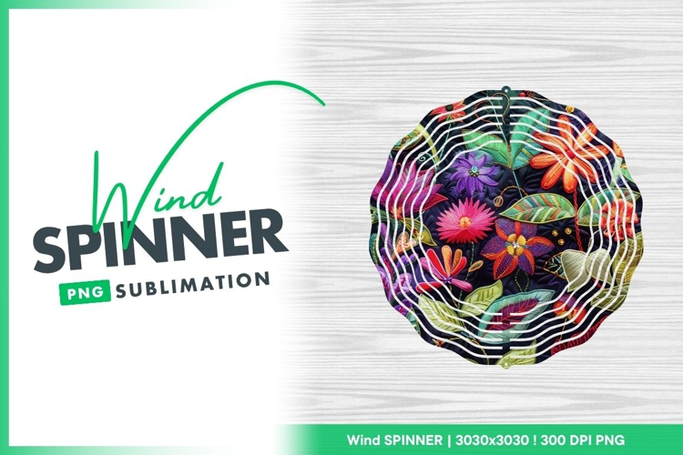 Embroidered Floral Pattern with Colorful Wind Spinner example image 1