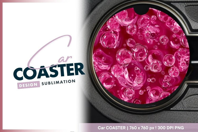 Pink Bubbles on Red Background Round Car Coaster Png example image 1