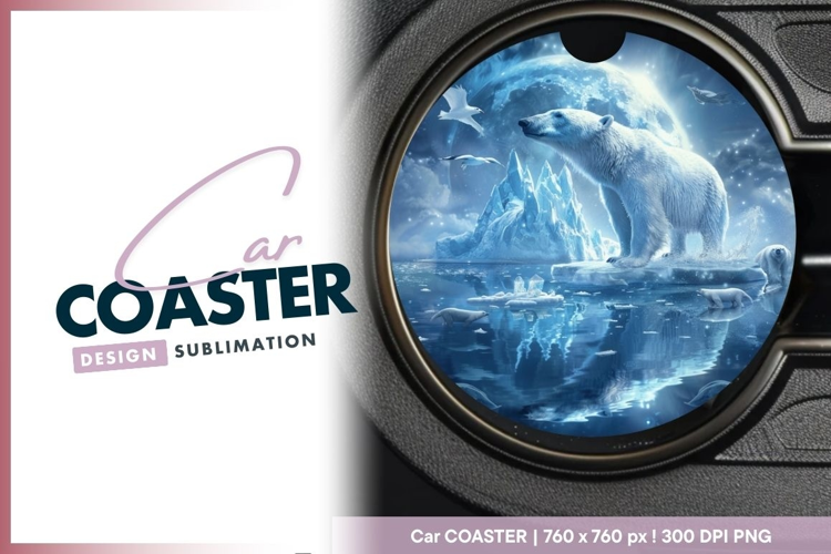 Polar Bear on Ice with Birds and Round Car Coaster Png