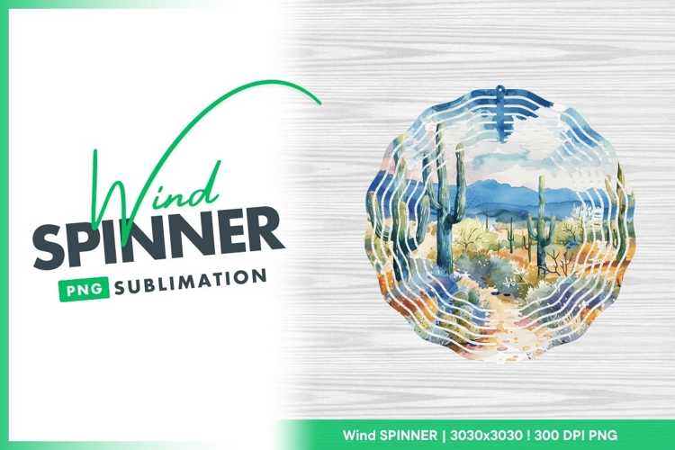 Watercolor Desert Landscape with Cacti and Wind Spinner example image 1