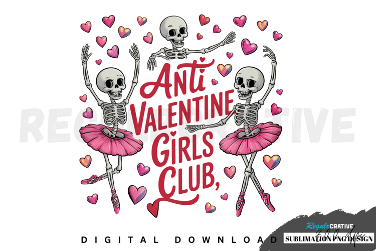 Anti Valentine Girls Club ,Valentine's Day Sublimation PNG example image 1