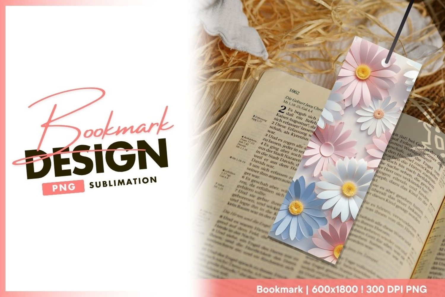 Paper Daisy Flowers in Pastel Colors on bookmark png design example image 1