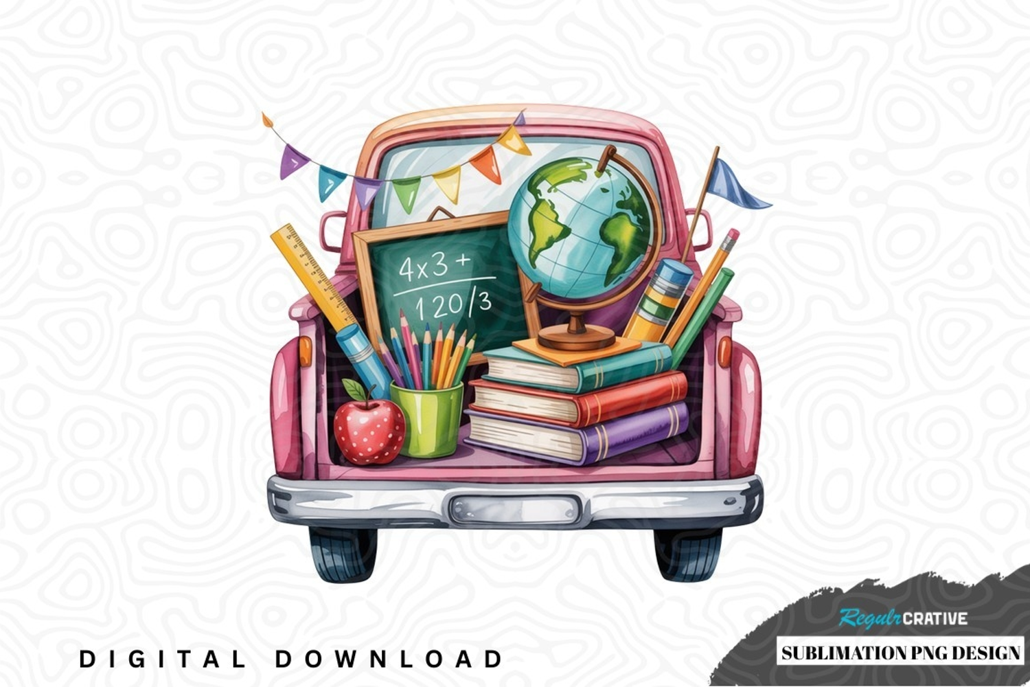 Vintage Chalkboard School Apple Truck Globe Education Books Pencils Back-to-school