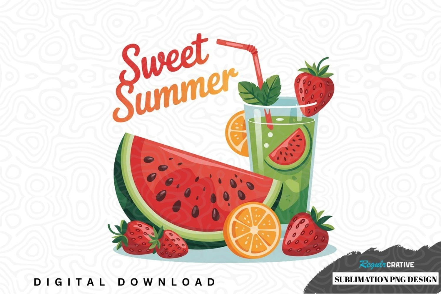 Sweet summer sublimation png design was created by hand and then converted to a digital file.