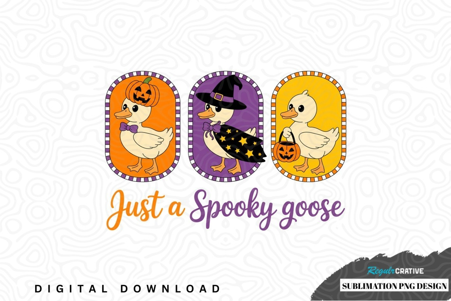 Just a spooky goose halloween sublimation png design was created by hand and then converted to a digital file.